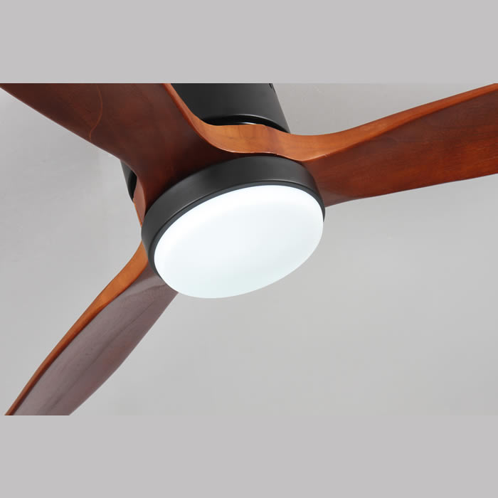 3 aspas de madera maciza, diámetro 132 cm, estructura de metal. Control remoto o control con App Smart.