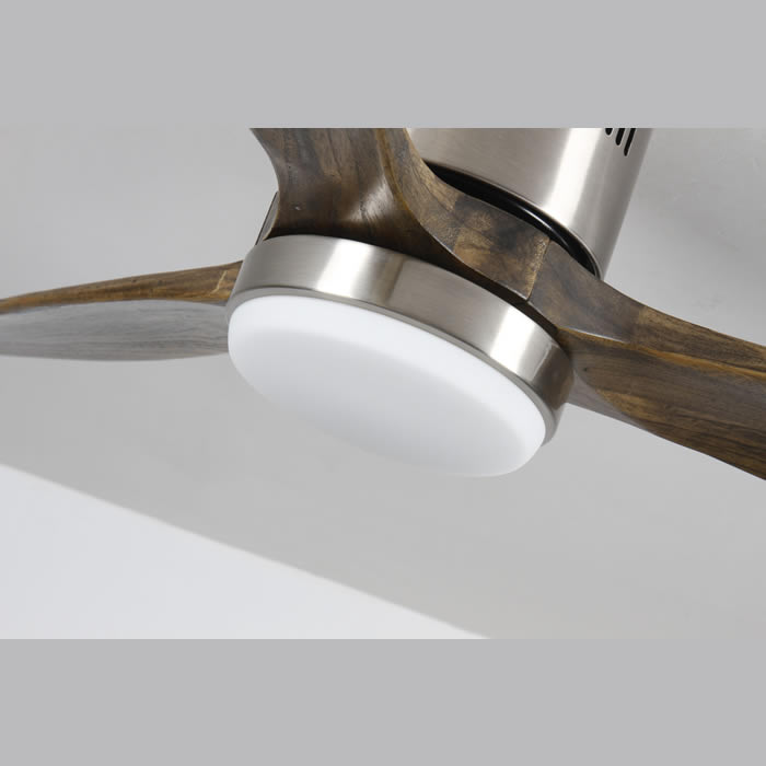 DETALLE: 3 aspas de madera maciza, diámetro 132 cm, estructura de metal. Control remoto o control con App Smart.
