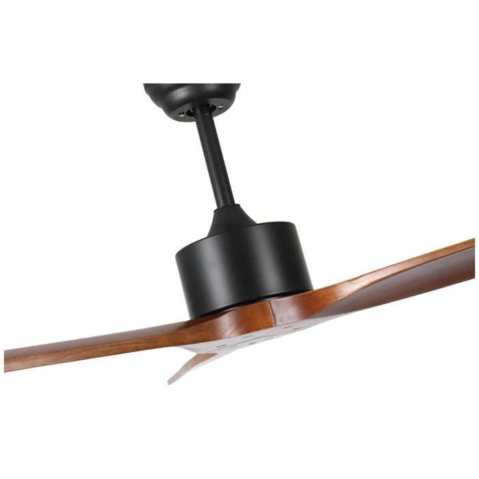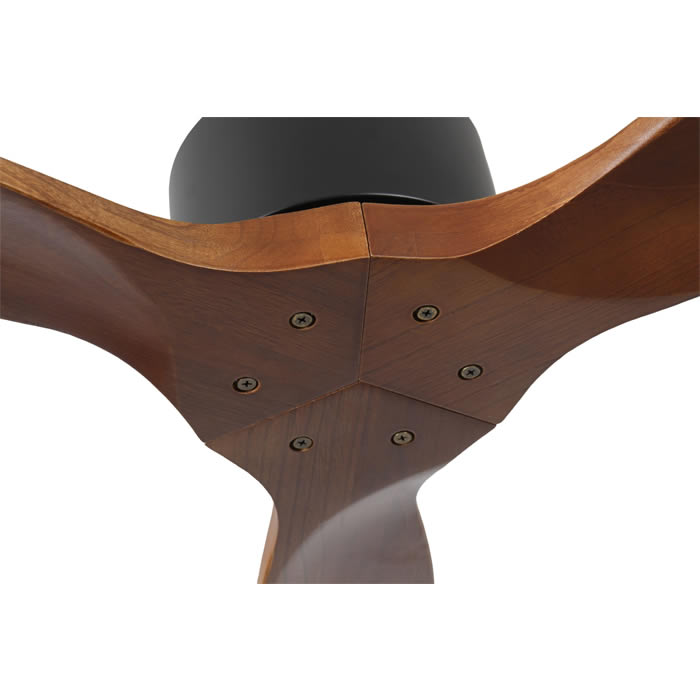3 aspas de madera maciza, diámetro 132 cm, estructura de metal. Control remoto o control con App Smart.