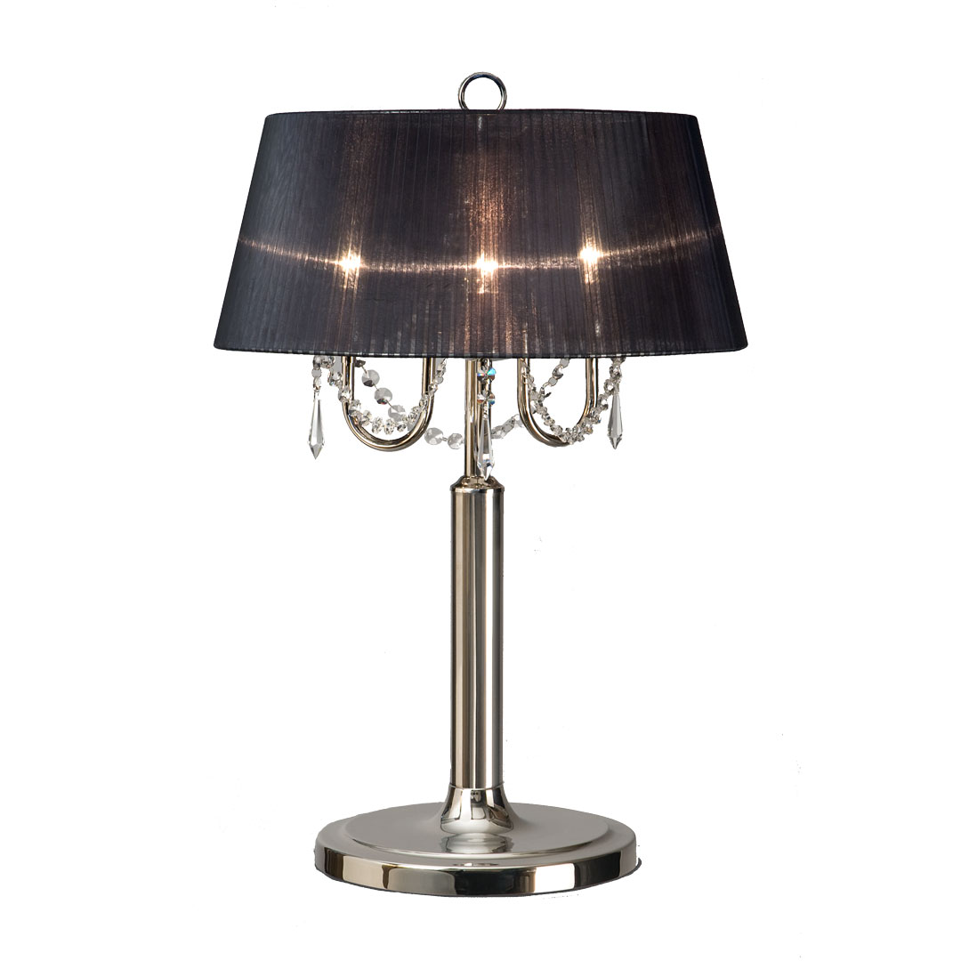 Lámpara de Mesa E 14 3 luces con cristal y pantalla cónica de organza.
