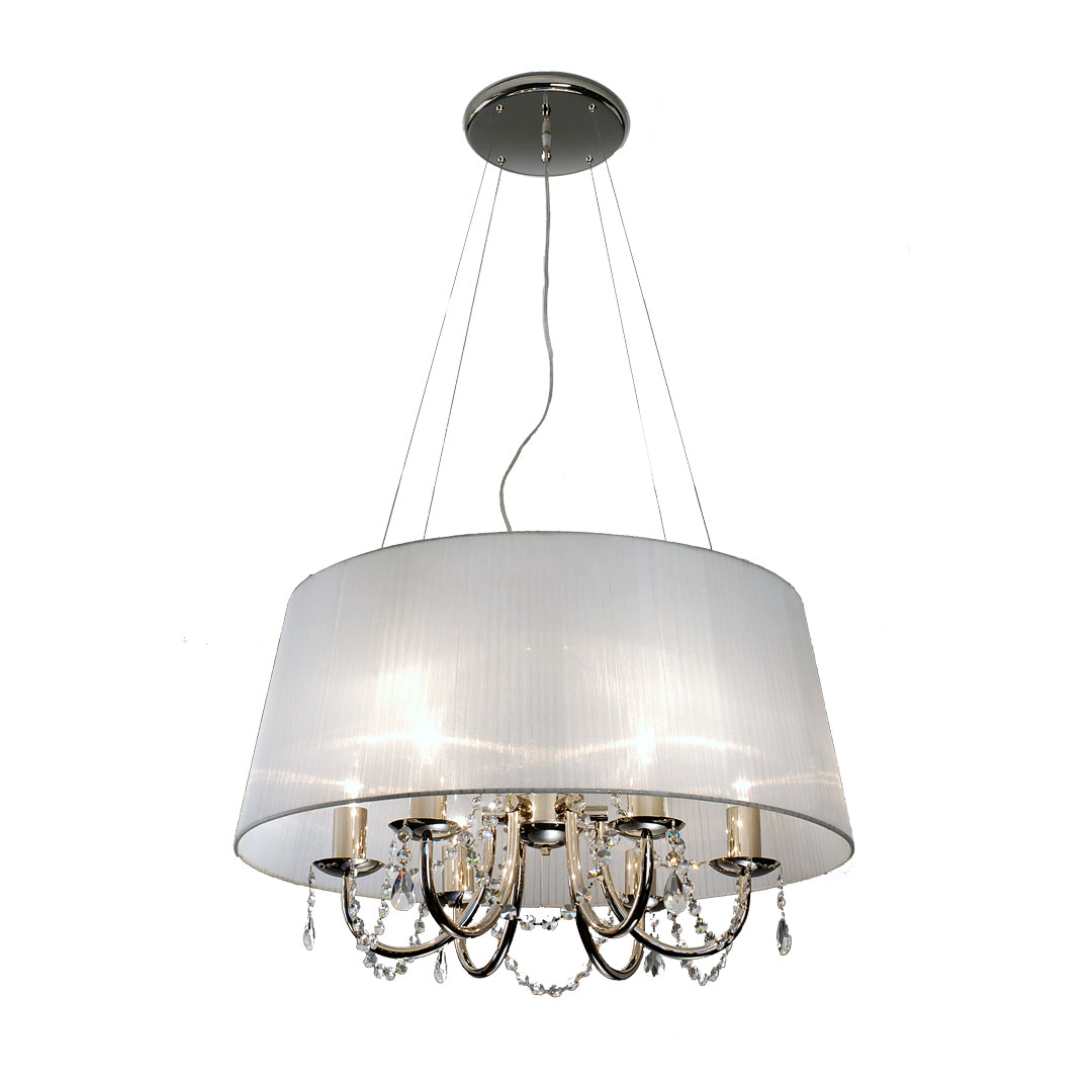 Colgante E 27 6 Luces con cristal y pantalla cónica de organza