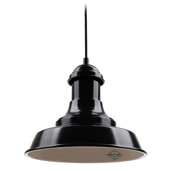 Colgante galponero construido en acero con terminación en pintura horneada, cable textil. Portalámpara E27.