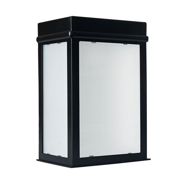 Farol en planchuela de hierro con vidrio satinado. Portalámpara E27.